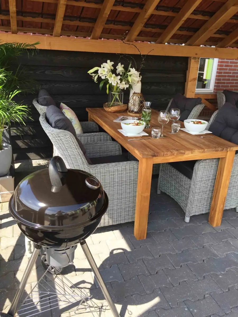 Tuinstoelen: Ash Grey / Tuintafel: Teak