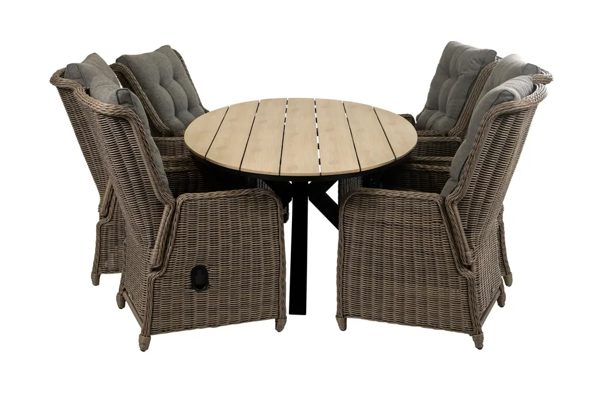 7-delige ronde tuinset | 6 Dublin verstelbare stoelen (SW) | ⌀150cm Cyprus tuintafel (Grey)