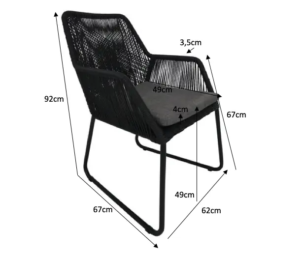 7-delige tuinset | 6 Mona tuinstoelen (Black) | 225cm Cyprus tuintafel (Grey)