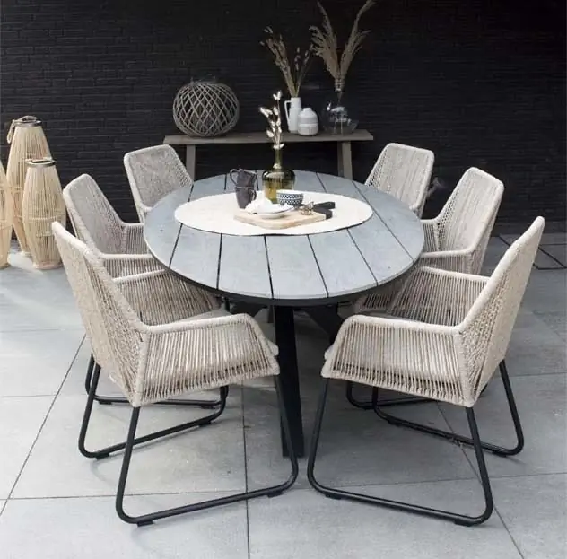 7-delige tuinset | 6 Mona tuinstoelen (Sand) | 220cm ovale Cyprus tuintafel (Wood)