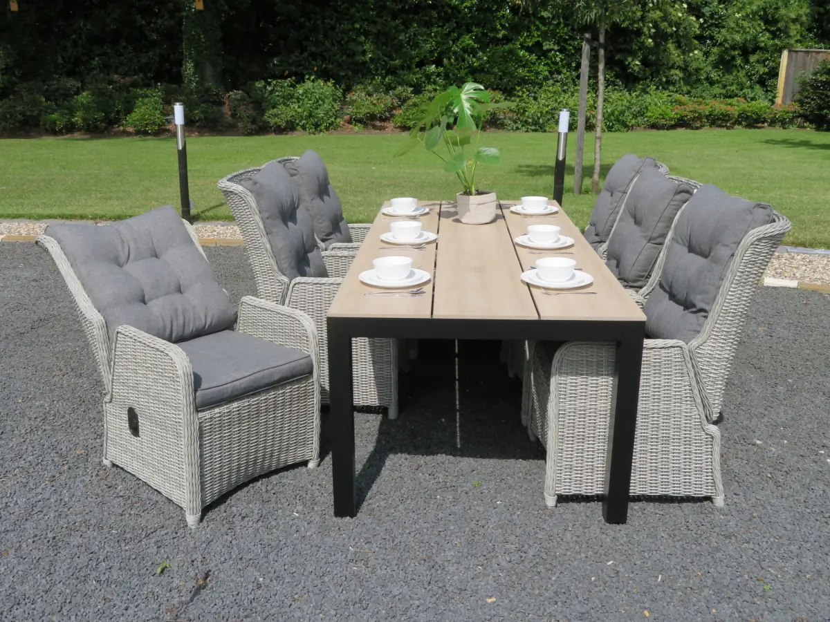 7-delige tuinset met 6 Dublin verstelbare tuinstoelen (Mystic Grey) en 225cm Cyprus tuintafel (Grey)