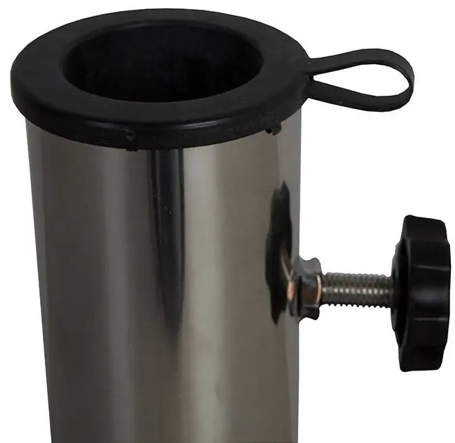 De koker waarin de parasol glijd is gemaakt van RVS waardoor ze onderhoudsvrij zijn. De parasolvoeten die voorzien zijn van een RVS koker zijn gemaakt voor de stokparasols. Tevens zijn de parasol kokers voorzien van 2 paar schroeven die je strakker kunt draaien aan de hand van de grote van de parasolvoet. Ook is de parasol koker voorzien van kunststof ringen waardoor de voet universeel is en er verschillende diktes van parasol stangen in kunnen.