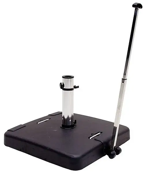 Een parasolvoet moet zwaar genoeg zijn voor de parasol, je wilt natuurlijk niet dat de parasol omwaait, maar ook niet dat je met teveel kilo’s aan het slepen bent. Wij adviseren daarom bij ieder type parasol die we verkopen een parasolvoet aan met het gewicht dat minimaal nodig is voor voldoende stabiliteit. Zo hebben wij de volgende parasolvoeten beschikbaar:
