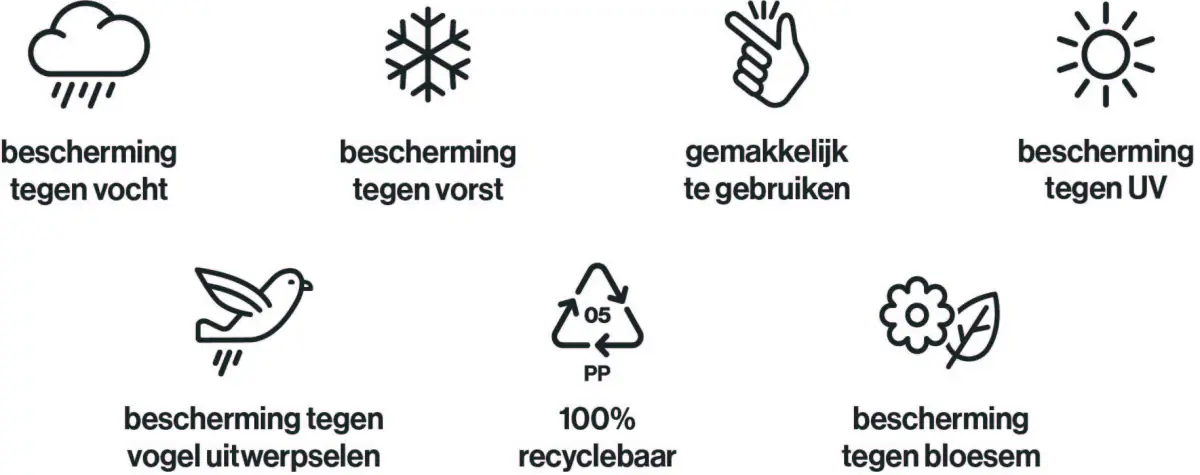 | Eigenschappen | UV-bestendig, Weersbestendig, Onderhoudsvriendelijk, Gepoedercoat frame, Verstelbare steldoppen |