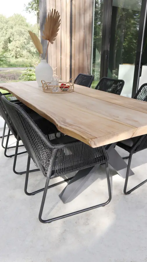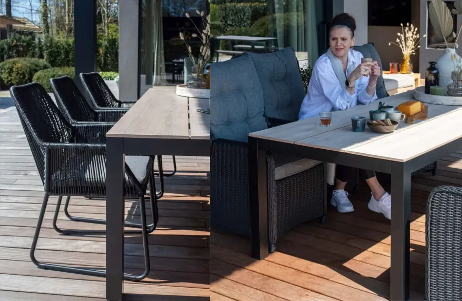 Met een rechthoekige tafel heb je een mooi statement in je tuin. Vooral als je veel ruimte hebt, vul je deze met een rechthoekige tafel mooi op. Heb je een rechte schutting, dan creëer je met de rechthoekige tafel eenheid in je tuin. Bovendien heb je met een tuintafel rechthoekig altijd genoeg plek voor iedereen. Waar je elkaar met een ronde tafel soms in de weg kunt zitten, heb je aan een rechthoekige tafel allemaal je eigen plekje. Bovendien heeft een tuintafel rechthoekig minder oppervlakte nodig dan een ronde tafel. Voor een ronde tuintafel heb je minimaal diameter van de tafel plus ruimte voor de stoelen nodig, om deze goed in je tuin kwijt te kunnen. In een langgerekte tuin is een rechthoekige tafel dan vaak praktischer.